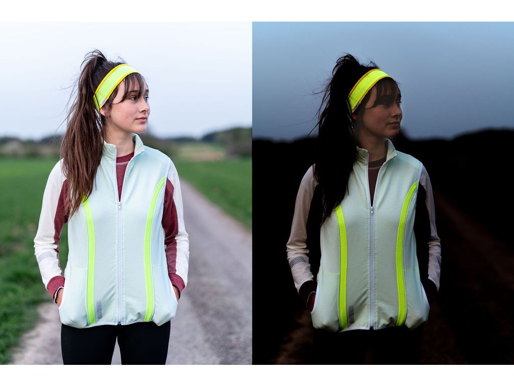 Bezpečnost zajišťují fotoluminiscenční lemy a retroreflexní potisk, které jsou vidět ve tmě a zároveň odráží světlo. To zajistí, že budete vidět i za zhoršené viditelnosti ve dne i v noci.