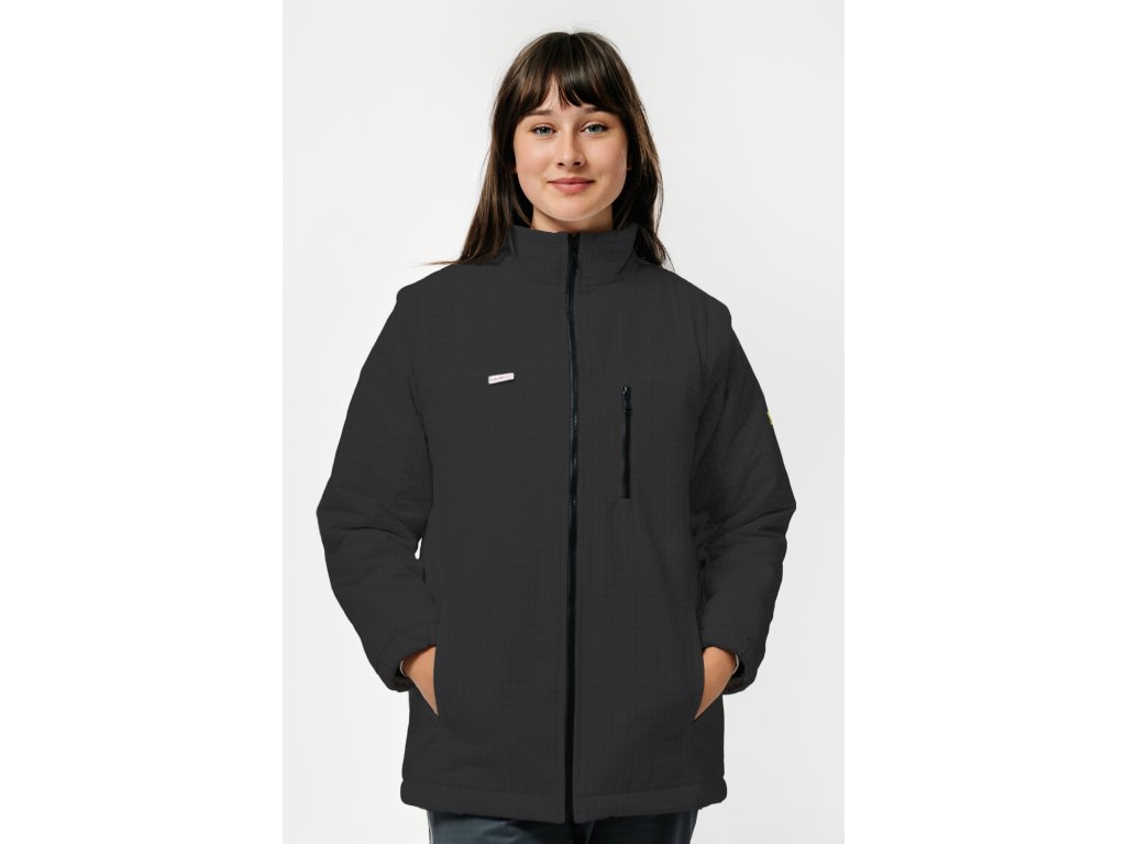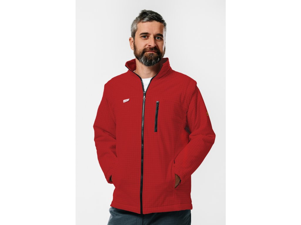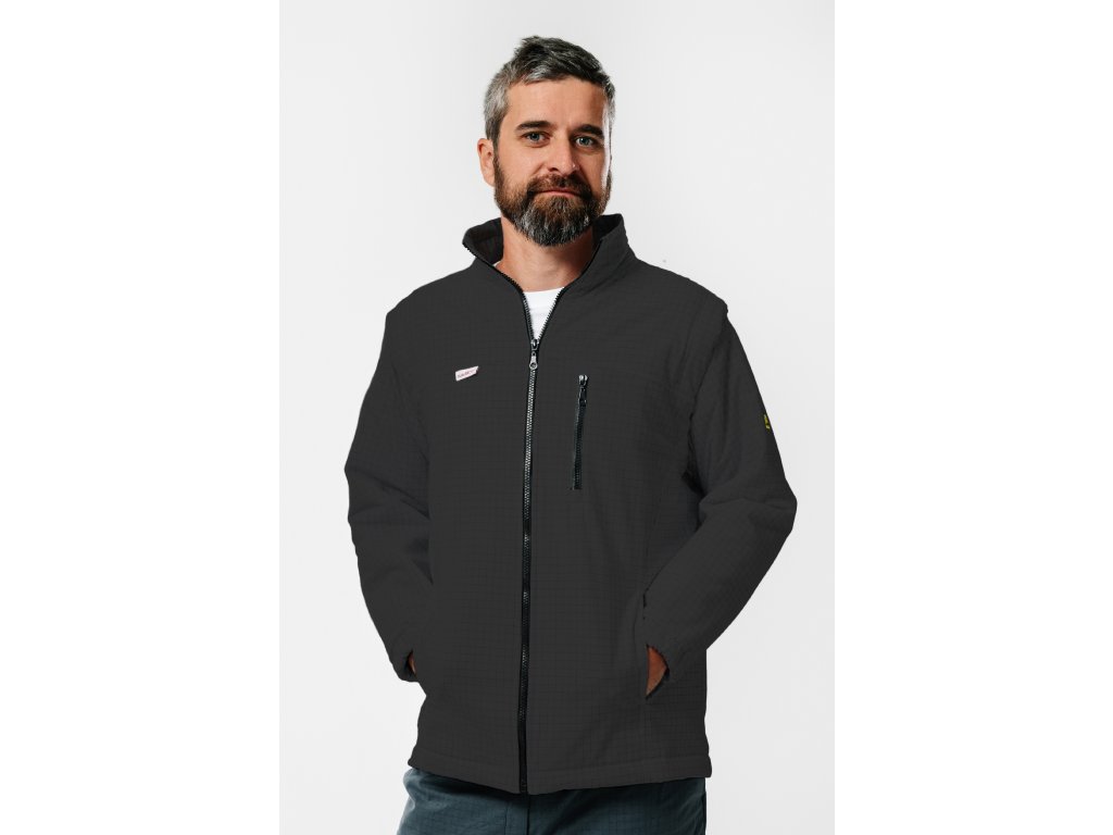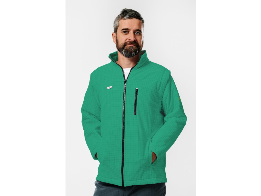 ESD bunda CLEVERTEX® je zateplená, pohodlná a zároveň poskytuje spolehlivou ochranu proti elektrostatickému výboji. Díky kvalitní směsi bavlny a polyesteru s příměsí antistatických vláken a uhlíkovému vláknu tvořícímu černou mřížku o velikosti 10x10 mm, splňuje normu ČSN EN 61340-5-1 a zajistí bezpečné používání v ESD chráněných prostředích. Zateplená podšívka s plošnou hmotností 300 g/m² poskytuje tepelný komfort i v chladnějším prostředí, zatímco jemná a odolná tkanina se příjemně nosí a umožňuje volný pohyb.