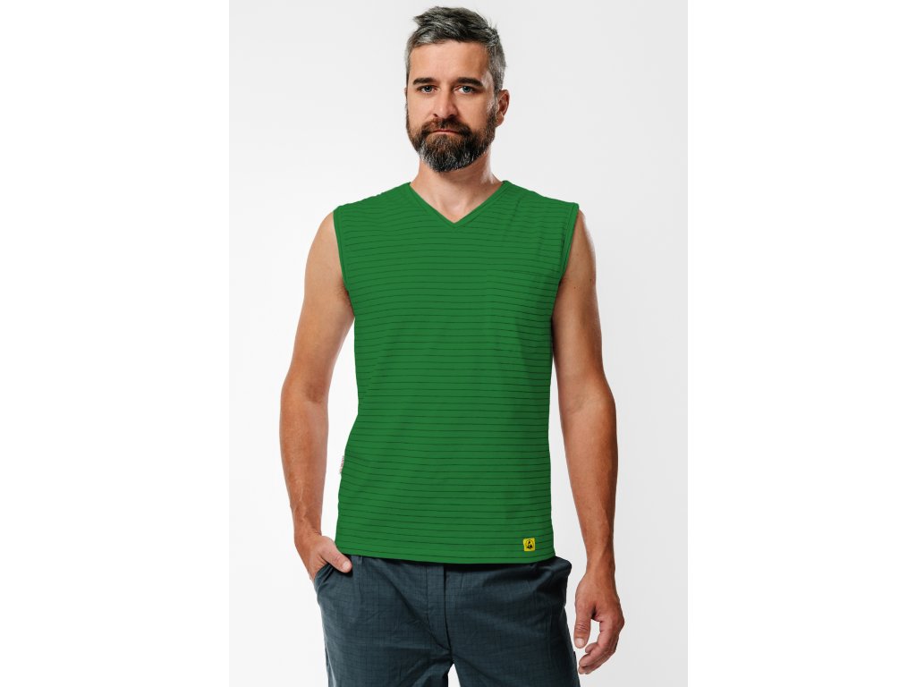 ESD triko bez rukávů a bez kapsy CLEVERTEX® je navrženo pro pracovníky, kteří potřebují spolehlivou ochranu proti elektrostatickému výboji a zároveň pohodlné a prodyšné oblečení. Vyrobeno je z kvalitní směsi 98 % česané bavlny a 2 % polyesteru s antistatickými vlastnostmi a splňuje normu ČSN EN 61340-5-1. Triko bez rukávů je lehké, příjemné na dotek a vhodné pro celodenní nošení v laboratořích, výrobních halách nebo jiných ESD chráněných prostorách. Permanentní antistatické vlastnosti zajišťují uhlíková vlákna, která v látce tvoří jemný proužkový vzor, a švy jsou rovněž provedeny antistaticky.