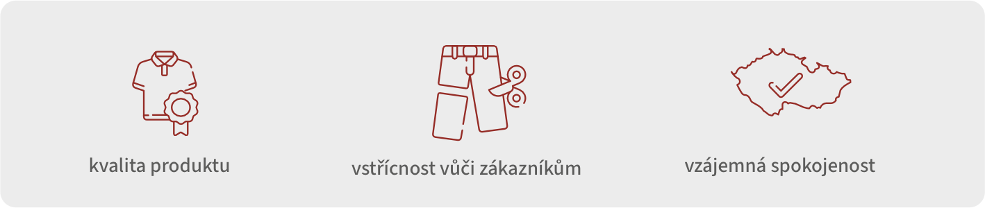 Podporujeme český textilní průmysl – většina našich výrobních aktivit probíhá v České republice. Díky tomu můžeme garantovat kvalitu, spolehlivost i férový přístup.